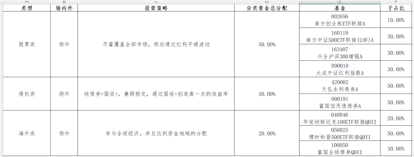 原本的策略比较稳妥,但整体来说资金还不够分散,并且行业、大小盘、海内外都有轮动的可能性,比如2023年沪深300的基金盈亏达到了-9.63%,而海外纳斯达克的基金盈亏达到了+9.22%,所以就调整了一下策略,新的策略当中加入更多的行业的基金,比如医药、消费等基金,并且大部分都是跟踪指数。