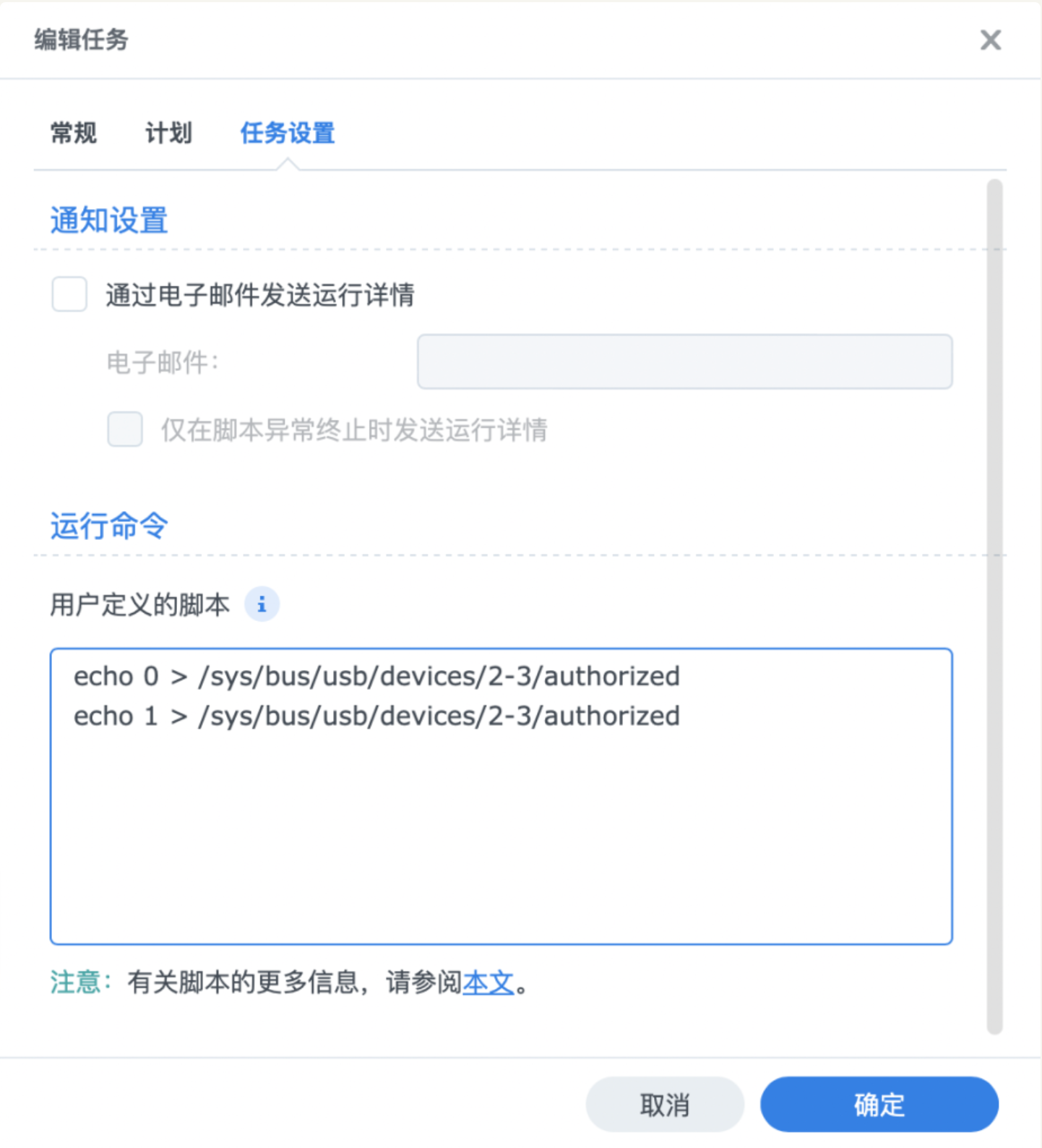 第二个步骤是将如下代码放入群晖的任务计划,选择运行的用户为root(一定注意,卸载挂载外置设备需要root权限):